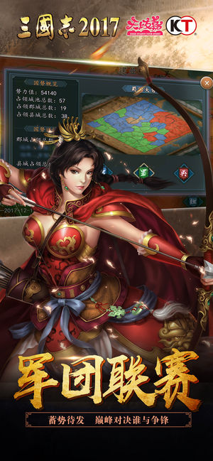 《三国志2017》由光荣特库摩经典单机游戏《三国志11》授权改编,不仅保留了原作大气磅礴的3D写实风格画面,同时引入万人同图竞技新模式,力求打造出别具一格的游戏体验。在游戏中,各位主公大人可修建城池、招募名将,体验割据一方的乐趣,也可缔结联盟、拓展版图,完成一统中原的伟业。再现SLG烧脑火拼盛况,万人国战即刻起航! 跨服征战 任你单挑群战 跨服战玩法强势来袭,军团争霸再添新花样!无论是单挑、群战,还是军团对阵、举国抗敌,总有一款玩法适合你!炸裂的战斗、丰厚的奖励,一个你从未见过的全新版本即刻起航! 光荣正版 回归策略本质 经典《三国志11》授权改编,日本光荣制作人北见健全程参与策划、监修。…