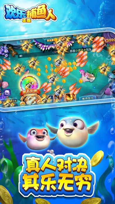 《欢乐捕鱼人-正版》 酷炫新炮台来袭,让你体验前所未有的超酷炫打鱼场景! 2017年四海八荒内最火的捕鱼游戏!让万千捕鱼老司机爱不释手的一款可偷分、可上下分的捕鱼手游! 1.联网竞技,捕鱼手游。真实同桌互动,万人同台捕鱼,你不再是一个人在战斗! 2.鱼人巢穴,组队玩法。四人副本,约小伙伴们一起去海底探险! 3.百万金币,爆机不停。新增彩金鱼玩法,金币累计由最终击杀玩家获得,摇身立马变土豪! 4.免费金币,拿到手软。新增红包玩法,土豪们一掷千金,红包、福袋抢个够,让金币不只有捕鱼才能获得! 5.更强boss,不服来战。新增小偷鱼玩法,抢钱玩法让游戏更刺激! 四海八荒内最好玩的捕鱼游戏,金币打完了?不存在的! 真正不一样的捕鱼,来玩就知道!