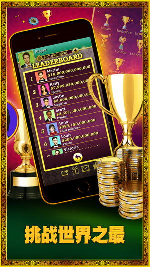 四分钟,十二局牌! 快、快、超级快! 快安装这游戏,立即开牌! 各位扑克爱好者!请欢迎全新最受欢迎的扑克游戏。如果你已经对德州扑克,或者其他类似的扑克游戏感到厌倦,我们为你带来全新的十三支扑克。这是一款在亚洲(尤其中国和菲律宾)十分流行的扑克游戏。规则十分简单,容易学会,但要精通,你得花一点心思去领会当中技术和策略。如你对其他扑克如:明牌十三、新版凰梨十三支、大老二或锄大D有所认识,你可能很快就能学会并开始赢出比赛。 游戏中设有多个等级场景,包括澳门、新加坡、拉斯维加斯、巴黎和伦敦。在不同的场景你会遇到不同的对手。你必须击败其他电脑对手来提升你的排名。我们有无限免费筹码,当你的余额少于$3…