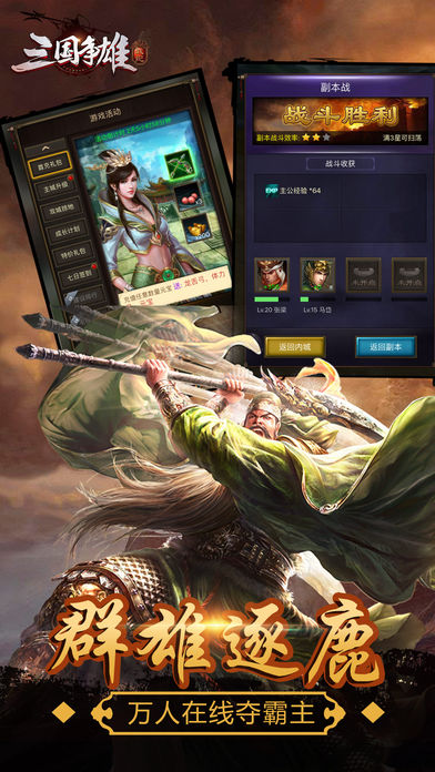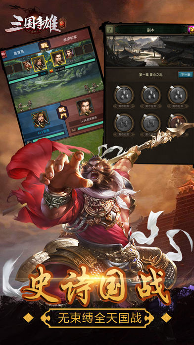巅峰的SLG策略国战手游。经典传承,情怀满满,史诗英雄,万人7*24小时高自由国战,争霸三国之巅。 【游戏特色】 ---远交近攻,多样发展--- 从无到有开始经营你的城池,科技、农业、军事都等待这你去建设去发展。 多样化发展,你可以选择发展军事,也可以选择提升领土生产力,先武后富或先富后武都由你来定夺。 时刻注意,小心虎视眈眈的敌国邻居与土匪盗贼的掠夺,提高自身实力,号召天下。 ---传奇名将,一一登场--- 历史名将,五虎大将,孙坚父子,曹营名将,一一登场。需要你用武力征服他们。这不是常见的卡牌游戏,武将需要靠“打”。 步兵、骑兵、弓兵,兵种轮回克制,打造你的强大军团。发挥你的智谋以下克上。 更有耳熟能详的装备如赤兔马,青龙偃月刀等封赏你的属下。 ---王权要位,民主选择--- 游戏分魏蜀吴三个国家阵营,一旦选择,终生不改。 国家设有一个国王,这位国王一定会是大家所拥护的,一个军师,这位军师能否发挥其智谋让其国家笑傲群雄,一个丞相、八大将军等官职,不同官职拥有不同的战事特权,官职由投票产生。因为我们需要民主,才能打造最强之国。 请组织你的军队、带领你的国民,向敌国进军吧,占领敌国领土,抢占敌国资源。 ---随心所欲,由我掌握--- 就像游戏里的音乐战场和田园一样,游戏里你可以选择做一个如张飞关羽般一将功成万骨枯的将军或者是一个悠然南山采菊东篱如华佗的隐者。 ---合心协力,开创天地--- 这里是一个弱肉强食的世界,加入你的势力为国家的强盛出一份力,因为国家的强大不能没有你,响应国王的号召,扩张城池,集结联盟,吹响号角,让我们在三国乱世中开创一片天地! 官方游戏群:538318428
