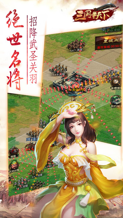 正统三国玩法,打造真正的SLG策略国战手游。 无束缚7*24小时高自由国战、举国之力伏尸百万皇城血战、击败收服历史名将、发展经营城池、真实还原三国历史、清新细致的古风画面、热血音乐,完美融合在游戏之中。 【游戏特色】 ---内修其政,外御强敌--- 从一座小城镇开始经营你的城池,科技、农业、军事都等待这你去建设去发展。 你可以选择优先科技提高生产力,也可以选择优先军事,发展武力。 击败周围的山贼,壮大你的城池。 请注意,小心虎视眈眈的敌国邻居。 ---历史名将,臣服脚下--- 历史名将,依次登场,需要你用武力征服他们。这不是常见的卡牌游戏,武将需要靠“打”。 魏蜀吴群雄上百武将等你征服,白蓝绿金红紫多种质量,武将是你征服世界的垫脚石。 步兵、骑兵、弓兵,兵种轮回克制,打造你的强大军团。 好的武将需要好的装备,赤兔马,闪电枪,大将印封赏你的属下。 ---登高一呼,剑锋所指--- 游戏分魏蜀吴三个国家阵营,一旦选择,终生不改。 国家设有一个国王、一个军师、一个丞相、八大将军等官职,不同官职拥有不同的战事特权,官职由投票产生。 组织你的军队、带领你的国民,向敌国进军吧,占领敌国领土,抢占敌国资源。 ---热血or休闲,随你掌握--- 就像游戏里的音乐战场和田园一样,游戏里你可以选择做一个一将功成万骨枯的将军或者是一个悠然南山采菊东篱的隐者。 做一只狼,搜寻猎物,侦查敌情,寻找时机,全力攻城,收获战利品。 做一只羊,巩固城防,发展科技,提示兵力,升级武将,保护好家园。 ---团结协作,同心同德--- 这是一款合作网游,万人激情在线,一个人的力量终究有限,团结在一起,什么都不怕。结成狼群,侵占敌国;或者抱团取暖,守望相助。 除了游戏,你将收获充实的生活和友情。 三国争天下官方玩家群:48030806