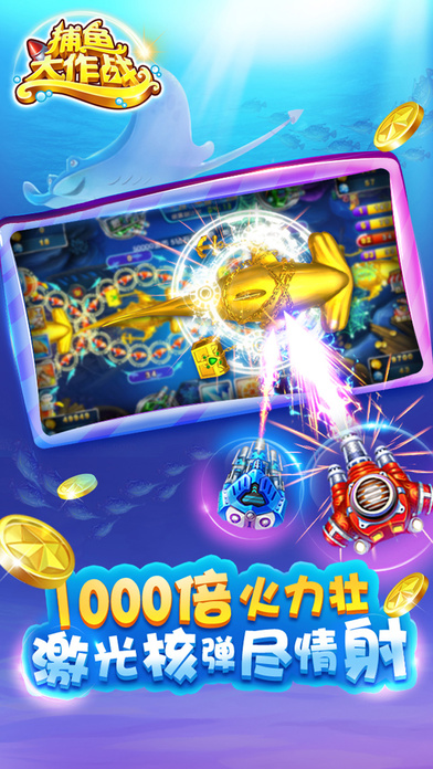 捕鱼大作战是一款多人联网实时对战的休闲类手机游戏,强调极易上手与欢乐流畅的游戏体验,通过梦幻深邃的海底场景、自然精致的鱼群刻画、华丽爽快的捕鱼画面、创意无限的玩法设计、诚意十足的各项活动,使玩家仿佛置身童年幻想中的游乐场中尽情娱乐 【游戏特色】 1.3D画面,海底探险身临其境 2.经典捕鱼,千炮金币爆不停 3.深海争霸,实力较量赢大奖 4.好友共聚,高额红包齐分享 5.百万惊喜,海量金币免费领 超嗨超刺激,快来一起领略真正的海底世界吧!