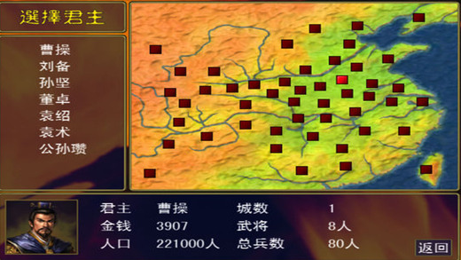 ———良心重制,无内购———— ---------怀旧玩法-------------- 这个游戏与以往的三国游戏相同的是统一全国,不同的是它的时间(应该说是年代)的表示方法是即时的,也就是说它不是回合制的,而时间是以月来计算的。游戏的重点是战争而非内政,玩家可亲临前线,在沙场上杀敌,也可运筹帷幄,享受军事家的乐趣。游戏按即时制展开,双方行动和交战是同时进行的,战斗景观相当刺激。 游戏进行的大致流程是“内政经营模式”到“大地战略模式”,然后到“战争发生”,再循环到“内政经营模式”。许多玩家说,这个游戏最吸引人的莫过于武将升级系统及必杀技了。 ----------战斗模式----------- 游戏采用了只在角色扮演类游戏中才出现的经验值,有了经验值也就有了升级。在游戏中,武将只要在出征队伍中就都会获得经验值,若出战(无论胜败),则会获得更高的经验值,若获胜,经验更加丰厚,但是若敌将逃走,获得的经验要少于敌将落马。只要达到一定的等级,就会自己学会一项新的必杀技或军师技。根据武将武力和智力的差异,不同武将可能拥有2-8项武将技和军师技(在游戏开始时每名武将就已经有了一项必杀技和一项军师技)。游戏的武将技在高彩模式的画面下有着华丽眩目的光影效果。