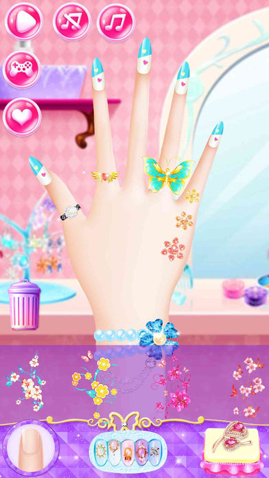 你想得到像公主那样的指甲吗? 化妆吧~~使你的指甲更美丽! 完全免费! 现在下载! 夹子,擦亮,装饰您的指甲等等! 修指甲虚拟指甲像一个真正的美甲师! 选择一种肤色,用指甲钳修剪你的指甲,并将其抛到一个吱吱作响的光芒中。 然后选择大量的抛光颜色收藏,以定制油漆华丽的指甲。 让你的内心指甲师出来! 选择绝对数量的闪闪发光的水钻,水晶,钻石,宝石,贴纸,贴花,心,花,水果等等,以装饰您的指甲。 一旦你对你的作品感到满意,将你的指甲保存到你的相册或分享! 用指甲油去除剂清理并重新开始! 玩的开心!