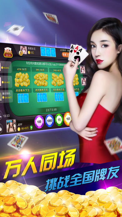 真人炸金花,2016年超受欢迎的万人炸金花! 【编辑推荐】真人炸金花,经典竞技扑克,等你来战 真实真人,完美对战 万人水果机、万人炸金花、万人老虎机 疯狂炸金花、真人炸金花、全民炸金花 1.游戏同时在线达到2万人,真人对战,让你体验真正的高手对决! 2.游戏分为“经典炸金花场”、“刺激红黑场”及更加紧张刺激的“万人水果机场”! 3.100倍大BAR爆灯,明暗场对决,让你仿佛身临炸金花电玩城中,享受炸金花、水果机、等经典街机的无穷刺激
