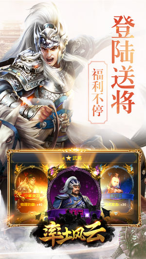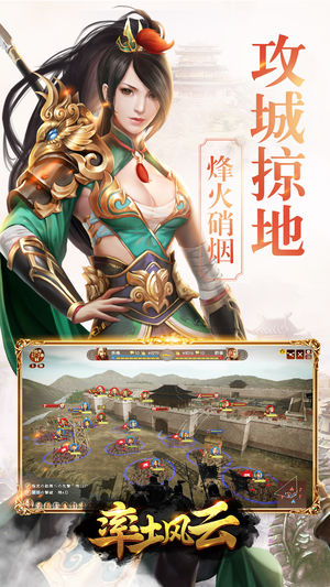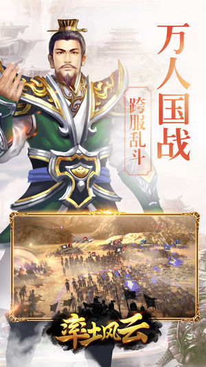 ******风云诡谲、变化万千****** ******群雄争霸,谁能执掌天下****** ———游戏简介——— 《率土风云》是一款纯正三国题材的策略性游戏。在这里,你将扮演三国乱世中的一名诸侯,率领千军万马迎战诸路强敌,体验精彩绝伦的史诗战役。一座座城池正在等待您的解放,一个个名动天下的武将正在静待您的召唤。攻城掠地,安邦立国,您准备好了吗? ———游戏特色——— 【众多武将一一登场】 三国名人,任君挑选。在这里,无论是武艺过人的将军,还是足智多谋的智囊,通通可以招入麾下。然而武将众多,且每名武将都有自己的独特之处,如何合理的利用资源,将武将的能力最大化利用,便是你需要考虑的问题。 【玩…