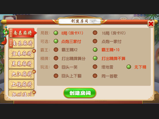 闲来江西麻将,开创房卡模式,是江西地区最正宗的麻将游戏。 闲来江西麻将,轻松约局,一人使用房卡,亲朋好友一起玩麻将! 【游戏介绍】 1、最正宗:深入江西调研,实时调整规则。包括闲来江西麻将玩法、南昌麻将、宜春麻将、晃晃麻将、九江麻将、上饶麻将、抚州包杠等十数种玩法 2、最全面:除了闲来江西麻将外,还拥有中原河北麻将、钱塘浙江麻将、山水云南麻将、广东麻将等超人气游戏!爱麻将的你,一起来玩吧! 3、最火爆:免费下载,无需注册,邀请好友即时开房!麻将永远是棋牌玩家的最爱,尤其是房卡约局麻将模式! 4、最专业:使用江西当地麻将记番算法,为您营造专业的本地麻将玩家朋友圈! 5、最安全:房卡模式的麻将,无人机对战,绿色安全无外挂,让您和好友麻将玩的放心,胡牌胡的开心! 【游戏特色】 好友约局:邀请好友打麻将,总点炮?不带他玩! 新手福利:注册送大量房卡,打麻将不花钱! 战绩展示:每玩一把,可以分享战绩给好友,炫耀一下吧! 玩法正宗:闲来江西麻将OL、南昌麻将、宜春麻将、晃晃麻将、九江麻将、上饶麻将、抚州包杠等玩法,都是深入本地调研后专业设计,正宗才是好麻将! 服务专业:24小时客服人员随时提供支持!