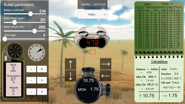 Sniper Game 3D Have fun shooting at targets at all distances. You will have to take alls the weather parameters to calculate the good shoot : - Distance - Wind - Temperature - Atmospheric pressure Different Maps are available: - Desert - Valley - Mountain The spotter mode helps you to do the sho…