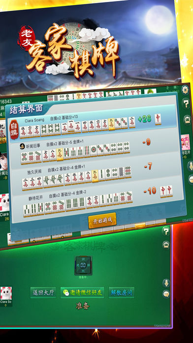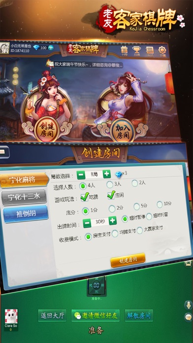 客家棋牌是专门为福建宁化地区人民设计的一款手机麻将游戏。独创的防作弊模式,特色的当地方言配音,约上三五好友,让您可以足不出户就可以感受到好友约牌的乐趣。