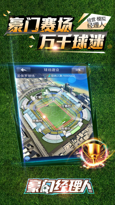 【豪门经理人】 - 万千球迷期待足球手游! - 荣誉奖杯、12强争霸赛,感受足球竞技的魅力! - 海量福利等你来拿! 【游戏介绍】 《豪门经理人》是一款足球策略经营类手游,玩家在游戏中扮演足球俱乐部经理人,签约顶级球星,管理足球豪门,打造梦幻阵容,拟定精妙战术,冲击世界冠军,制霸球坛巅峰! 【游戏特色】 『真实模拟』真实模拟俱乐部式玩法,感受到豪门经理人乐趣! 『策略养成』球星策略养成,阵型千变万化! 『玩法多样』排位赛、大师联赛、天梯赛应有尽有!