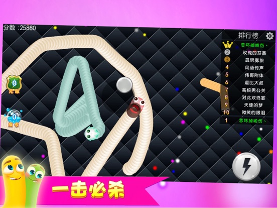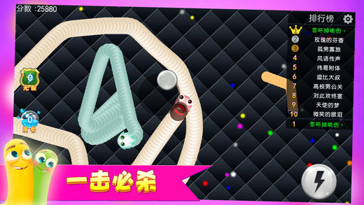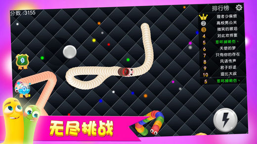 2017最热休闲竞技手游,还在等什么,赶快来玩! 【这个游戏有毒,根本停不下来】 这是一款令人停不下来的休闲竞技贪吃蛇手游!经典《贪食蛇》玩法全新进化,!还在玩别的游戏?那你就out啦!快来成为全球最长的蛇蛇吧! 游戏玩法: 1、不断吃掉小光点,成为世界最长蛇蛇! 2、只要让敌蛇的头头碰到你的身体,敌蛇就会死亡并且产生大量光点! 3、U型包围、小蛇狂奔、联盟围堵,逗趣好玩的策略战斗让你瞬间逆袭! 4、无尽模式or限时模式,和小伙伴们比比谁更长吧! 游戏特色: 【经典“贪吃蛇”玩法】 经典玩法重新演绎,吃光点长身体、围困敌人吃掉对方能量,比比谁吃得更快更长!我就是“贪吃”我要做最长的“贪吃蛇”! 【狂奔逆袭,小蛇翻身】 大蛇不再永远称霸天下啦,游戏里小蛇逆袭的震撼会让你欲罢不能!急速超车拦截蛇头、急停甩头抢道、画个圈圈诅咒你…这些都是战斗技巧! 【Q萌可爱,超多皮肤】 超Q萌清新画风让你爱不释手,源源不断的小蛇皮肤全部开放供君选择! 【“老少通吃”的游戏伙伴】 跨房间,跨楼层,跨年龄层,跨国界,在这款游戏里,你遇见谁都是有可能的喔。斗智斗勇吧,把朋友吃掉,把邻居吃掉,把陌生人吃掉……咦,怎么听起来有点邪恶呢,但真的很好玩啊!哈哈哈!