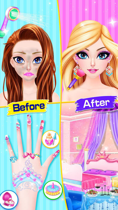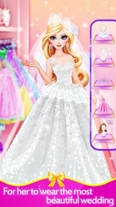 一款女生喜欢的新娘和婚礼主题的布置房间、水疗、化妆、换装游戏。美丽的公主女孩就要结婚了让我们一起来为女孩的婚礼做准备吧! 先装饰一下婚礼的房间,然后做个舒服的Spa, 化一个漂亮的新娘装,穿上美丽的婚纱,今天真是太幸福啦! The most beautiful and exciting Wedding Style game with Room,SPA,makeup & dressup is coming now! All accessories are FREE! Just enjoy this game with your friends and family! I can't wait to see your great arts in this fun games! Come and enjoy! GAME FEATURES: - Design your own wedding room! - Fun accessories to complete the makeover. Put a smile on face! - Hair, Jewelry, Clothes & more! - Dozens of hairstyles - Save it to your own princess diary!
