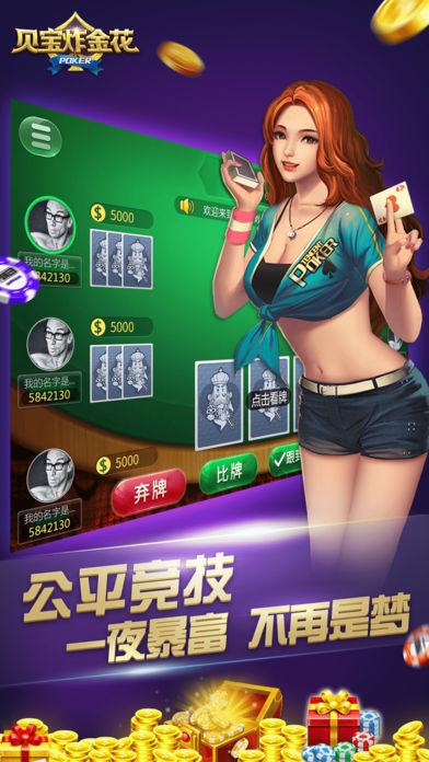 【贝宝炸金花】好紧张、好刺激的炸金花,你一定没有玩过这么好玩的棋牌合集 无需注册--- 一键登录游戏,畅玩斗地主 赠送金币--- 每天登录签到即可获赠最高5金币 全天客服--- 7×24小时客服服务,60秒响应您的所有问题