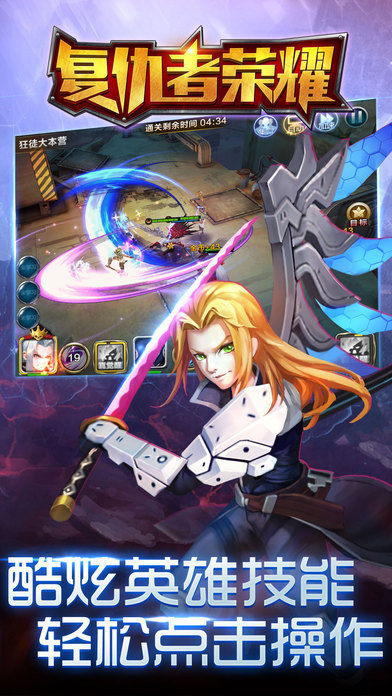 《复仇者荣耀》以守护地球文明为主题。讲述了一个叛逆少年英雄大战“幽灵军团”拯救人类文明的故事,带给玩家一个全新的充满想象力的异能世界。 操作简单惬意: 游戏操作简单,单手点击屏幕控制位移。战斗傻瓜化,所有技能自动锁定敌人,技能释放可以选择自动、手动两种状态,状态之间切换十分灵活方便。可以说操作上没有任何门槛和难度,非常适合各个年龄段的玩家来玩。 超强阵容搭配: 战士(坦克肉盾)、刺客(物理输出)、法师(法伤输出)、圣职(辅助治疗)四大职业,英雄众多,百种技能,五人小队,阵容搭配由您做主! 丰富PVE玩法: 不再是无聊的刷刷刷,PVE副本玩法多变。绝命追击(使命?)、死守到底(决心?)、亡命逃脱(本能!)、吊打BOSS(超神!)好玩不解释! 超级潜能爆发: 杀戮让人变得疯狂,每一位英雄都拥有无穷的觉醒之力,一个英雄两种形态,平日里温顺的软妹子,觉醒后也会变成超级女汉子,爆发无穷杀伤力! 天赋无限进化: 每一位平凡的召唤师都能成为天赋异禀的大神。不管您是提升属性、还是增加技能、还是加强觉醒,这一切由您做主,相同阵容也能玩出不同风格! 极致PVP体验: 黎明之战震撼开启,召唤师为了生存殊死一战,活下去才能成为最强王者?对手太强没有关系,学会套路“田忌赛马,避实击虚”吊打大R不是梦想!