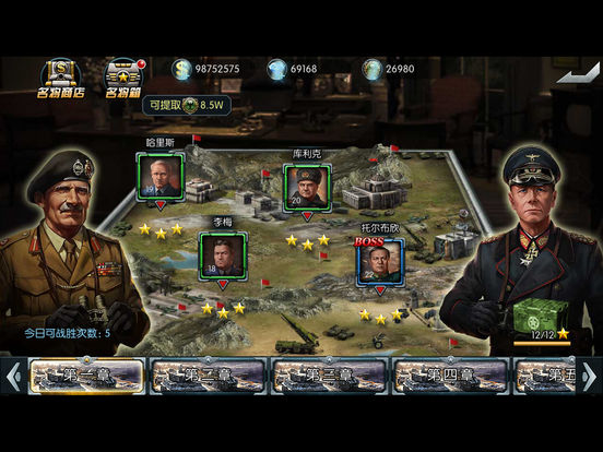 终于等到了!军事策略手游《王牌坦克连》全新世界征服战资料片震撼开启!三大阵营重兵集结,打响国战第一炮!万千坦克同屏对决,铸造最热血的坦克手游!集合策略和国战经典玩法于一体的坦克游戏,传奇将领,万人国战,占领世界疆土,成就世界霸主梦。 ※游戏特点※ 1.军事策略手游力作 2.世界征服国战开启,三大阵营酣战淋漓 2.装备新科技的坦克在历史战场完美再现 3.完美操控坦克部队,战场瞬息由你掌握 4.随时掌控战场局势,改变游戏策略 5.指挥官系统养成,让你战场上如虎添翼 6.竞技场,单、多人PVE.PVP,多重花样玩法 7.丰富多样的任务