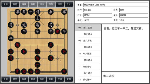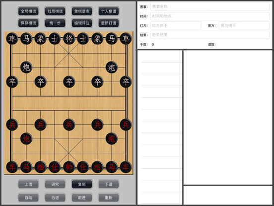 象棋学士包括iMac、iPad和iPhone三个版本。也包括免费的版本,欢迎下载。 象棋学士,中国象棋打谱软件,专为象棋打谱而设计。 支持评注的编辑与修改! 主要功能如下: 1)打谱功能 可以完成象棋棋谱的打谱与保存,录入评注信息,保存内容包括对局基本信息、评注信息、对局过程。注意:不支持变着。 2)复制与粘贴布局功能 可在任何局面下复制棋子布局,在残局打谱模式下粘贴布局,打谱更方便。 3)棋谱库 包含大量各类古代和现代经典棋谱以及中国顶级象棋棋手的实战对局,便于学习和研究。 4)演示功能 可以进行单步、自动演示和研究,操作便捷。