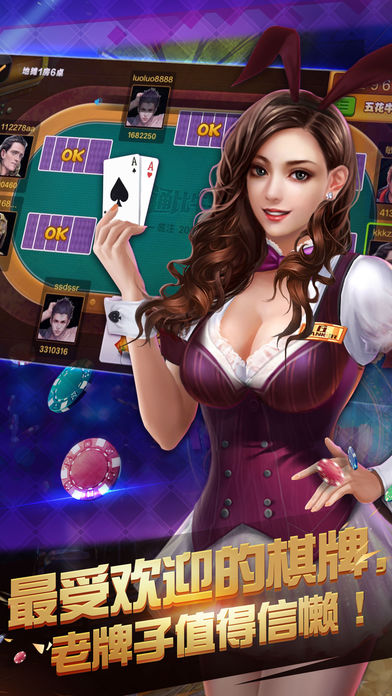 【游戏介绍】 场景精美、动画生动、玩法丰富、节奏明快,瞬间即可让你体验到无穷乐趣。除合入原汁原味的地方性斗牛玩法,更创新性推出多种策略玩 -- 850棋牌游戏唯一官方网址:www.game850.com 【游戏特色】 1,《经典模式乐趣多》闷牌闷到底,比牌比翻天,超级刺激玩牌体验 2,《公平公正》防作弊系统保证游戏公平性,让你放心游戏,无需担心打伙牌 3,《精美画面》精致绚丽的画面体验起来畅快淋漓