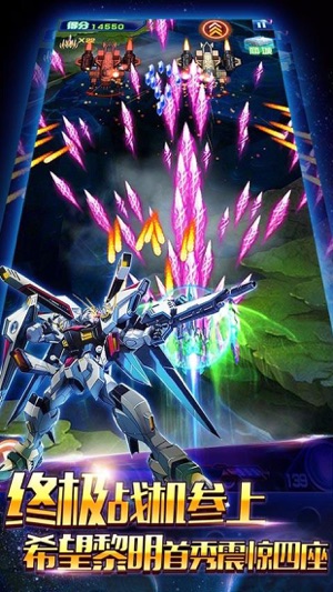 高清空战打飞机,激情热血“三飞”,射到你停不下来!2017新版本火热来袭,全新游戏体验,独特射击操作,让你主宰星空,激战爽不停! 【高清空战,传奇之作】 高清空战,极致畅爽手感,世界级游戏品质! 【超华丽特效,梦幻战斗体验】 独特弹幕设计,每架战机均有专属弹幕特效,数十种超华丽弹幕,配合极易单指操作,让你体验最梦幻战斗体验,纵横星际! 【丰富战机选择,DIY专属战机】 进攻型、防御型、综合型多样战机选择,更可自由搭配僚机,创造至尊火力,进阶战机更可解锁独特战机造型,专属战机由你打造! 【独有BOSS模式,激发野性本能】 独有BOSS模式,击败星际最冷酷BOSS,获丰厚战利品,提升战力不是梦!
