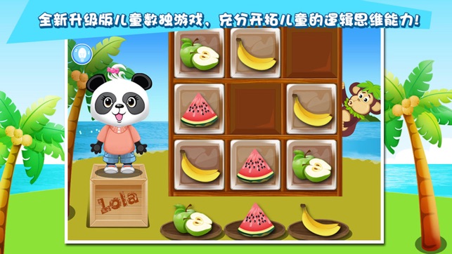 游戏中,小朋友们帮助可爱的乐乐熊猫分配水果, 按游戏规则成功的完成几次分配水果或相关数字的任务后, 能赚得相应的奖励, 直到最后“水果”商店就可以开张了!与乐乐熊猫其他的受小朋友喜爱的游戏一样, 这款数独水果商店游戏操作简单明了, 更配有愉快活泼的声音指导。, 这款游戏从最简单的任务开始,年龄稍小的小朋友适合从这里开始进入游戏,他们只需要分配3乐乐熊猫带来新型儿童数独益智游戏! 充分帮助开拓小朋友们的逻辑思维能力! 现在小朋友们可以非常快乐的和乐乐熊猫一起共享这款为他们自己专门设计的新型数独益智游戏! 游戏里的系列关卡设计适合于4-8岁不同年龄段的小朋友们 , 想更多了解这款新型数独游戏…