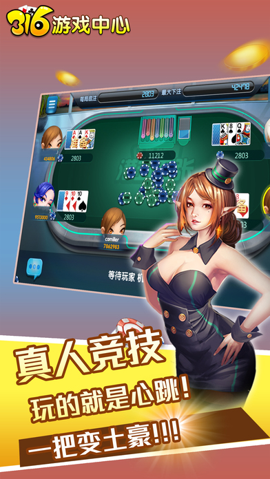 《316游戏中心》是一款休闲娱乐游戏平台,热门游戏,欢迎体验! 游戏特色: 1.经典、刺激的游戏玩法,高清、唯美的游戏画面,让你欲罢不能! 2.登录送,游戏送,活动送,多重豪礼送不停! 3.神奇海域,等你来,万人游戏爽不停! 4.经典玩法,一触即发,100倍奖励等你体验! 5.真人竞技,玩的就是心跳,一把变土豪!