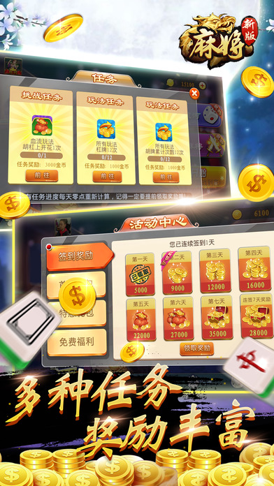 四川麻将!经典玩法!血战到底! 开局换三张!一胡到底!high翻全场! 正宗四川麻将!血战到底!血流成河! 打缺门!刮风下雨!火爆热辣,干脆爽利! 让您充分体验四川麻将带来无穷欢乐趣味! 激情四人川麻,斗智斗勇尽在这里! 四川麻将游戏特色: 地方特色,地道川音,原汁原味四川牌局! 传统+创新,玩法变变变,各种牌型满天飞! 精彩活动,金币来就送,真正的免费游戏!