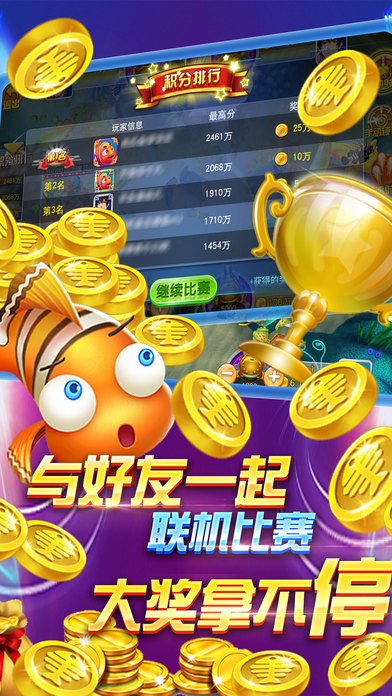 年度捕鱼游戏耀世之作,全新篇章,千倍赢率,震撼开启! 『3D视觉-极致盛宴』『千炮街机-完美重现』『神秘宝箱-百万金币免费送』 @画面精美 设计大师精心打造,带你身临其境体验街机捕鱼的氛围,街机游戏厅玩法再现。 @多人在线 捕鱼技术好,大胆秀出来,全国捕鱼高手陪你一起玩,尽享捕鱼欢乐热闹氛围。 @特色鱼阵 黄金鲨,特色BOSS,百倍银鲨,万倍金鲨。千倍爆率,全程爆机,金币赚翻天。 @道具丰富 黄金之角,水晶风暴,千炮倍率多种炮弹任君选择,多种特效鱼狂送无限金币。 多人在线畅玩,秀炫酷捕鱼特技,领丰厚大奖礼包,更可以挑战全国捕鱼达人走上人生巅峰!