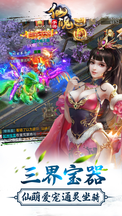 2017年度仙侠MMO巨制《仙魄》手游版唯美出鞘!3D无缝大地图畅游仙界江湖,神宠坐骑个性满满、家族帮派抢BOSS、绝顶高手爆神装……还有自由市场装备交易,真正还原超火爆经典手游盛况;精致画面与华丽技能给予玩家极致的游戏体验;更有霸气战阵、炫酷时装、跨服PK等开放式玩法等你来主导,演绎属于你的次世代仙侠世界! 【官方Q群:655026636】 火爆福利: 1:开服七天冲榜,全民抢千元壕礼! 2:天天登录领奖励,天数越多越丰盛! 3:冲级达人一剑封魔,送绝品稀有红装! 版本特色: 1、神兽系统 集齐对应的神兽装备可以激活神兽助战,增强人物属性,越高阶的神兽激活需要的神兽装备颜色越高,属性加成越强,同时也有各种神兽技能可供玩家选择;神兽装备可以在神兽岛击杀boss、击杀神兽岛精英怪、采集神兽宝箱获取,也可以在巅峰寻宝中获取神兽宝箱。 2、跨服神兽岛 可以进入神兽岛,神兽岛内会刷新跨服boss、龙灵精魄、凤血精魄,跨服boss有疲劳值,每天最多击杀三次,与世界boss疲劳不共享次数;在神兽岛里面的区域频道可以跨服聊天。 3、仙器进阶 开启仙器进阶功能,通过炼器界面进入,使用镯灵玄晶和戒灵玄晶可分别对手镯和戒指进阶,获得更强大属性。 4、巅峰寻宝 开启巅峰寻宝,由主界面功能寻宝进入,巅峰寻宝产出戒灵玄晶、镯灵玄晶、大夏龙雀等珍贵道具,可以使用巅峰秘匙寻宝和元宝寻宝。 5、宝石精炼 开启宝石精炼功能,使用红水晶或者蓝水晶可以对玩家装备的宝石进行精炼,精炼成功后加成宝石属性;红水晶和蓝水晶可以巅峰寻宝获取。