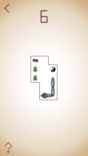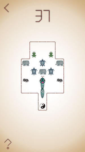 一款灵感来源于贪吃蛇和推箱子的益智解谜游戏 在方格中一步一步移动贪吃蛇,吃掉所有其他动物。和贪吃蛇一样,每吃掉一个动物,蛇就会变长一格。吃光所有动物并到达出口,就可以获得胜利。 *规则来源于经典游戏贪吃蛇和推箱子,简单易懂,5秒上手 *将剪纸与皮影戏结合,独创的清新中国风画面 *老鼠、青蛙、螳螂、大象、乌龟,五种不同效果的动物,与蛇巧妙互动 *还有一个压轴元素,与五种动物都有精妙的联系 *一共50个精巧设计的关卡,每关都有独特之处,绝无雷同的体验 *自带免费无冷却的提示功能,可以随意使用 *追求极简风格,整个游戏只有4个按钮,几乎没有文字