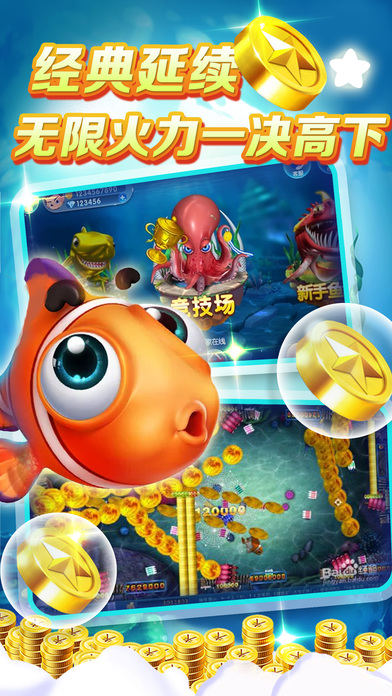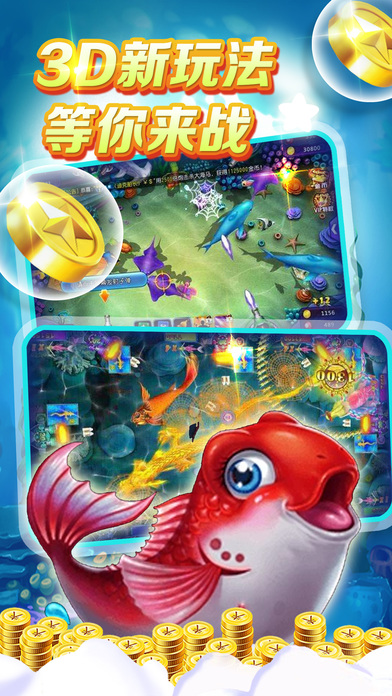 【游戏特色】 为手机用户量身打造的精品捕鱼游戏,操作简单玩法有趣,让你身临其境体验赌场氛围与乐趣,随时随地开启欢乐之旅,上分,下分,随心所欲。 1:百万金币免费领,送你上千炮,贵族礼包各种神秘大礼等你拿 2:千炮不够爽?万炮等你来,轻松直升功能让你打造强力炮台捕鱼所向披靡 3:是不是真正的捕鱼牛人排行榜见分晓,排行榜挑战鱼友刷新得分赢奖励 4:金币送不停,幸运奖金鱼会掉落抽卡获得兑换券让你换取丰厚的意外奖励哟