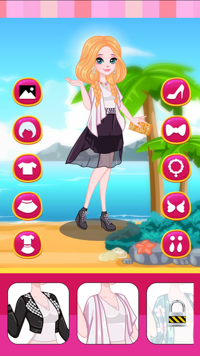 Do you think you could give her a hand choosing the right outfit? Go through all the different items and pick the items you want to use until her outfit is perfect. Are you a talented designer? Then prove yourself by creating some amazing fashionable dresses! Start with the top part and decide if you want it to be asymmetric, strapless, with puff sleeves or bows. Then color each part of it with solid colors or patterns. Then continue your outfit with a pretty skirt. It can be wrapped around her waist, it can be shaped like a tulip or like a mermaid, it can have ruffles or the bottom could even be a pair of pants. You can choose from the same fabrics for the bottom part as well. Now that she has a dress ready, you can style the girl's hair, add a belt, a cute necklace, a hair accessory and a lovely pair of shoes. Have a wonderful time playing Fashion Dress Up Girl Game For Teen!