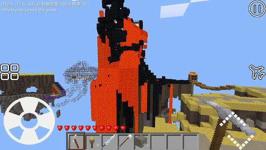 ##联网服务器会不定时更新。玩法和地图数量都会有变化,敬请保持关注! #僵尸和怪物会统治一些领域。在天黑之前请务必找好安身之所!而勇敢的斗士们会选择拿着长剑和他们决一死战! +创造模式下,所有材料免费!所有材料免费!所有材料免费!这点重要的说三次!而且是无限量供应的!唯一的限制就是你的想象力! +数十个本地/在线联网地图。各种风格建筑和及其好玩宏伟的生存地图等待着您的探索!速来膜拜! +生存模式下有怪物和僵尸出现。在联网世界中和来自全世界的玩家共同战斗吧! +支持中文 建造世界是一款经典的像素沙盒类游戏(类似我的世界)。支持生存创造模式和多人联网。在这里,您就是创世神!