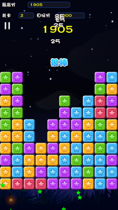 消星星,有趣耐玩的消除游戏,沉浸在闪亮的星空中。 游戏规则: - 点击2或更多同样的元素进行选择 - 再次点击选择的元素进行消除 - 谨慎选择,冲击最高分! 得分规则也很简单 - 同样的元素越多,得到的分数越多 得分公式: 得分 = 元素数目 * 元素数目 * 5 - 结束时剩下的元素越少,奖励分数越高! 奖励公式: 奖励 = 2000 - 剩下元素数目*剩下元素数目*20