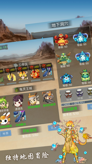 不一样的放置类游戏... 更简单明了的属性装备系统,特别的神魂及光辉系统,可在每次获得新的精灵和角色的同时,拥有新的属性加成选择. 单个角色或精灵最多装备四条神魂,可自由地搭配属性. 装备最多同时拥有9条属性,3条主属性+6条附加属性. 可以通过捕捉和道具召唤的方式获得精灵. 游戏中拥有多种途径获得钻石,任务、冒险以及挑战...