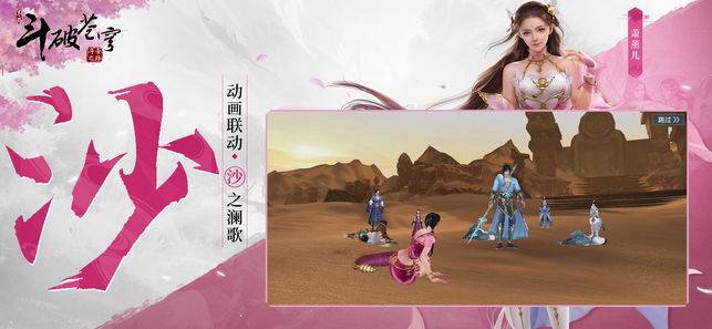 斗心不灭,异火重燃,《斗破苍穹》手游x动画联动「特别」资料片 “沙之澜歌”上线!纯正原著复刻,灵族少年登场,在新版本中,斗者将重返旧时大漠,解锁动画隐藏剧情,逆转时空改写结局。 【游戏特色】 一、小说还原,纯正原著内容呈现 小说作者“天蚕土豆”执笔世界观架构,原著经典天焚炼气塔、外院武斗、生死门、火能捕猎、收服异火、魂力炼药、猎杀魔兽等原味呈现。 二、远古八族,个性职业荣耀抉择 远古八族职业五族首发,药族•玲珑、萧族•焚炎、雷族•千影、石族•漠铁、灵族•御风率先征战斗气大陆,远古八族盛世将现。 三、空战激斗,360°全景空域战场 斗气化翼,滞空翱翔,特色战场“中州浮岛战”号角奏响。飞行斗技操控…