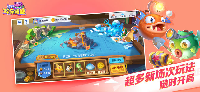 四海八荒万众期待的《腾讯欢乐捕鱼》正式版本终于来临啦~精美的海底场景,神奇的鱼类BOSS,等你来爆金体验。更有碰碰鱼、消消乐、海岛夺宝等全新玩法等你来探索! 【全新玩法】 1. 碰碰鱼:幸运开炮,惊喜碰撞,奖励多多!带来全新捕鱼体验! 2. 海岛寻宝:招募出海捕鱼的勇士,一同挖掘特殊海域的宝藏,琳琅收获让你满载而归~ 【海域BOSS】 1、 海神:拥有无数宝藏的海神,击败他并通过考验将获得巨额财富! 2、 冰霜巨龙:栖息于极寒冰川的古老生物,击败巨龙争取属于勇士的荣誉和奖励吧! 3、 更多体验:凤凰BOSS、聚宝盆、贝壳珍珠、幸运金牛等让你捕鱼惊喜不断! 【福利盛宴】 1、…