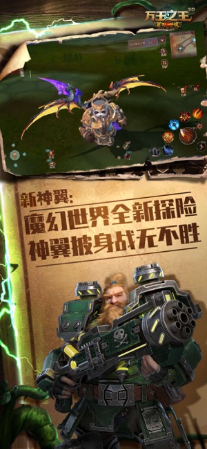 年度魔幻史诗手游大作,《万王之王3D》手游带你重温经典,指尖开荒;顶级魔幻画面,360度自由飞行,四大种族,经典战法牧搭配,上千种任务探索7天升满级;兄弟齐心随时随地组团开荒;公会城邦,大型跨服战场,激情阵营厮杀,寻回昔日荣光! 【自由飞行,畅享360度全景大片】 360度自由飞行,畅游2600万平坦格拉美亚大陆,领略精致唯美的魔幻风光,上千种任务上百小时的情节任务,在这片新大陆书写属于你的传奇故事 【种族崛起,重聚战法牧】 兽人、精灵、矮人、人族、夜魔、妖灵六大种族重拾经典回忆,最具诚意的战法牧职业体系,史诗转职任务,30种最终职业养成,技能相互关联,策略战斗趣味无穷 【并…