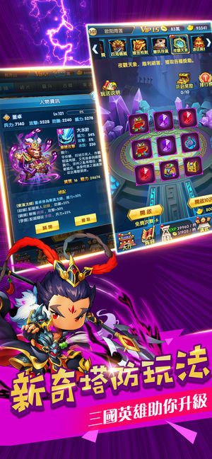 【遊戲特色】 無雙武將 策略搭配 張榜求士,求賢若渴?豐富多樣的武將防禦塔,擁有不同的特殊技能,運用策略搭配他們,想辦法獲得強大的陣容;還需要使用主公的強大技能,方能成就霸業~ 休閒玩法 不肝不氪 受夠了氪金手遊?厭倦了熬夜遊戲?不如輕鬆放置,掛機也可獲得經驗,彈指間即可完成超強技能,遊戲隨心,助您一步登天~ 玩法豐富 暖心社交 多樣的副本、驚喜冒險、洛陽尋寶,你想要的活動這裡都有!和其他玩家同台競技的同時,不如關注勢均力敵的對手,或許也會生出惺惺相惜的友誼與好感哦~