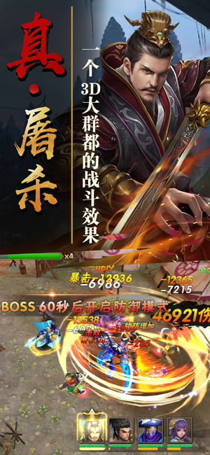 《真三国战》是一款三国题材即时3D游戏,上百三国神将听你指挥,在运筹帷幄中,揽获天下。全新的玩法配置,多方向养成武将路线,操作轻松,指尖点击释放大招,独创技能打断机制,让人感受前所未有的实时对战技巧性,进入游戏召集武将,展开改写历史的冒险吧! --------游戏特色-------- ◆经典战役创意主线 草船借箭、七擒孟获、三顾茅庐、千里走单骑……真实还原三国真实历史,重温经典大事件,主线地图采用新颖的开城模式,击败每个城池的守关大将即可解锁城池!