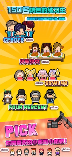 作为偶像养成真人秀的鼎盛之年,节目一个接一个,你,是不是沉迷于舞台上的小哥哥和小姐姐们不可自拔?偶像离你这么远,节目结束了就无法再看到挥洒汗水努力练功的爱豆们了,好难过,怎么办? 《偶像天团养成记》为此孕育而生!由柠檬酱工作室与608factory联合研发发行,是一款在韩国火爆的模拟经营游戏! 粉丝们不用苦恼爱豆离你这么远,妈妈粉们也不用苦恼再看不到努力的娃们,粉圈更不存在cp粉们互相掐架的情况! 通过《偶像天团养成记》,你可以亲手组建你喜欢的偶像团体,没有黑粉没有绯闻,随意拉郎配,只要你喜欢,什么男团女团都能风靡全世界! 全民经纪人们,与你的偶像签订五年合约,请将ta们变成宇宙级顶级…