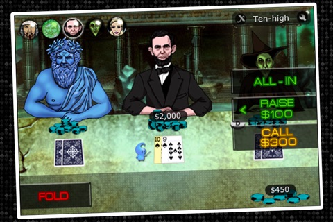 • Enter a Texas Hold 'em tournament with 25 characters from history whose poker styles mimic their personalities. Real life strategists like Abe Lincoln, Genghis Khan, and Cleopatra partner with legends like the Cheshire Cat, Wicked Witch, and Abominable Snowman to convey the iPhone's smartest poker AI with a touch of humor and imagination. iPhoneAlley says: Imagine Poker is an enjoyable, whimsical twist on the classic Texas Hold 'em genre. If you're looking for something slightly more entertaining than a straight-up poker game, Imagine Poker is a fantastic choice! === Key Features === • 25 animated and talking opponents from history, each with their own humor and tells • 6 beautiful rounds include Atlantis, Transylvania, and Wonderland • Scroll around the room to study opponents' poker tells • Use finger gestures to adjust your bet • Calculate your mathematical odds at any stage in a hand • Unlock new characters by earning Imagine Points • Play Limit, No Limit, and Pot Limit Texas Hold 'em • Based on the best-selling Mac game === Characters === • Abominable Snowman • Abraham Lincoln • Amelia Earhart • Barack Obama • Blackbeard • Cheshire Cat • Cleopatra • Dracula • Genghis Khan • Grim Reaper • Julius Caesar • Little Red Riding Hood • Marie Antoinette • Medusa • Merlin (from King Arthur) • Mona Lisa • Napoleon Bonaparte • Ned Kelly (Aussie bush hero) • Neptune • Rendlesham the Alien • Robin Hood • Sherlock Holmes • Stalin • Tooth Fairy • Wicked Witch