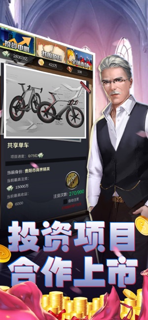 《金牌投资人》是一款写实题材的多人在线模拟经营类手游。玩家将扮演一位白手起家的创业人士,用第一笔资金开启创业之路,扩建店铺、招纳人才、商业谈判,逐步提高自己的赚钱能力与扩张商业帝国。在这过程中,豪车美酒、美女相伴也必不可少,游戏将把您代入真实的商战体验。 【游戏特色】 【招聘人才 任用调配】 21世纪了,现在到处都缺高级人才,拥有了高级人才,就可以轻松赚大钱啦!游戏中有人才市场,猎聘中心,各型人才任君招聘。提升人才能力,培训人才都可以加速赚钱速度,代替你进行主线战斗和商战,助你走上人生巅峰! 【升级建筑 加速赚钱】 建筑是游戏中赚钱的基本单位,首先建筑越多,赚钱自然是越多的,因此多多解锁建筑绝…