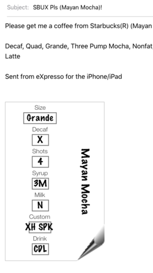 *** Now with select Secret Menu items *** Synopsis: Your Ordering Assistant for Starbucks(R) Coffee with graphical beverage creator, favorites recall, order lists, secret menu suggestions, easy ordering w/Barista speak, store locator, Starbucks(R) account access, card balance checker, beverage and n…