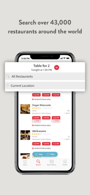 Discover great dining experiences and make free restaurant reservations at more than 43,000 restaurants around the world. The perfect travel app to dine like a local, find restaurants by location, cuisine and more plus get personalized recommendations based on your preferences. View photos, menus an…