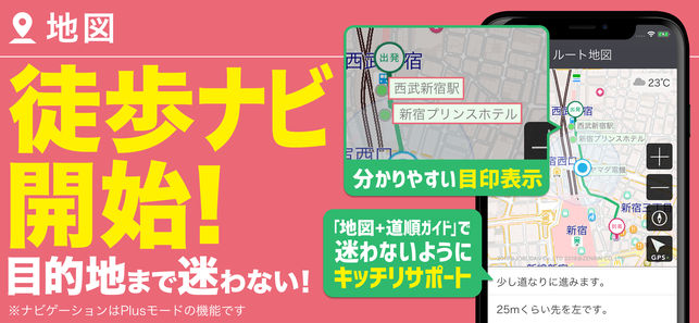 ◆【ジョルダン乗換案内】とても便利な機能3選◆ [1]かゆいところに手が届く【再検索機能】 乗り遅れても「1本後」、ちょっと早く駅に着いたら「1本前」、前後の列車の出発・到着時刻がわかる「前後行き方」検索も便利。乗り換えがうまくいかなかったときも「ここから再検索」機能で検索し直す手間を省きます。 [2]初めての場所でも迷わない工夫が満載の【地図&徒歩ナビ】 移動中の目印になるお店や建物などを分かりやすく強調表示したり、曲がる場所などを文章でも案内する「道順ガイド」で、目的地まで迷いません。(*一部Plusモードの機能があります) [3]現地からの情報だからどこよりも早い!急な遅延や運転見合わせ…