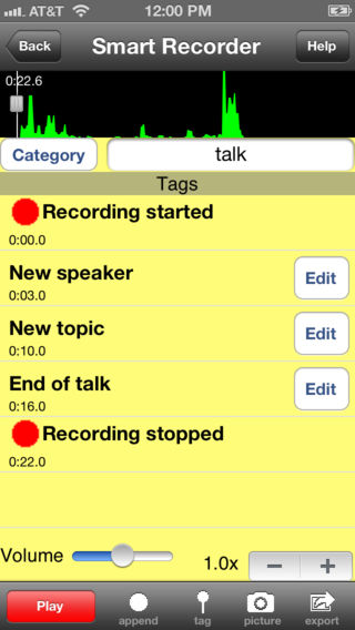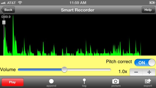 Smart Recorder 是适用于 iPhone 和 iPad 的最佳音频录音器。使用本应用程序录制会议、采访、演讲、课程、待办事项、购物清单或者您孩子的声音。不论您完成何种录制任务,Smart Recorder 都是您的理想工具。您能通过它获得高品质录音以及多种实用功能: - 简单易用的用户界面 - 后台录音和播放(在 Smart Recorder 正在录音或播放时其他应用程序可以正常运行,设备也可以置于睡眠模式) - 生成适用于 iPhone 的铃声 - 支持复制/粘贴 Sonoma Wireworks MAPI--可以与 90 个支持 MAPI 的任意应用程序交换录音 - 多种导出/导入方法,包含: - Dropbox - Box.net - 电子邮件 - Wi-Fi 同步 - SyncDocs - iTunes 文件共享 - 支持多种导出格式,包含 CAF、WAV、AIF 和 MP4。 - 弹出提醒帮助您选择导出大型录音的导出。 - 在录音中添加标记或图片 - 时间滑块/快进/快退按钮,可快速浏览您的录音 - 支持蓝牙和外接耳机 - 自动暂停/声音监听激活录音 - 具有可选音调修正功能的多种速率播放 - 多种系统设置控制 Smart Recorder 的程序行为 - 支持立体声 - 翻转模式,将麦克风置于顶部 - 附加到现有录音 - 对录音进行分类/排序 - 录音无时间限制 - 完整详尽的帮助页面,描述 Smart Recorder 的全部功能 - 通用应用程序,支持 iPhone 和 iPad 即刻购买,您将获得包含多个全新功能的免费更新!!! 如果您喜爱本产品,请前往下列链接了解 Mac Smart Recorder http://itunes.apple.com/app/smart-recorder/id412615645?mt=12 http://itunes.apple.com/us/app/smart-recorder-lite/id420266239?mt=12 本产品提供免费版本,可在此下载: http://itunes.apple.com/us/app/smart-recorder-lite/id349259683?mt=8