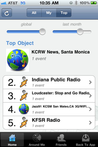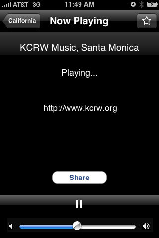 You asked for it! Background Play is now available in version 3.0 together with other collaborative features: Twitter, Facebook, browsing the station's website for current programming schedules. All without leaving your audio player. Listen to over 360 public radio stations! Now with Twitter and Facebook support: tell your friends what public radio station you're listening to, live, without stopping your audio to invoke an external Twitter or Facebook client! Includes all Public Radio stations broadcasting online in MP3 format. Public Radio is the favorite application to listen to your local NPR station. Public Radio allows users to select from nearby audio streams by US State and station call letters, or add your own favorite audio stream. You can also pick from your favorites or your recently played public stations. You can even share with your friends iTunes and Radio links to a station stream using your iPhone or iPod Touch Mail application. And you can also post your favorite links directly to Twitter or Facebook. Supports nightly dynamic update of the public stations database.