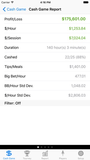 赌神管家帮您赢更多的钱!赌神管家帮您回答下面的问题: *我每小时打牌赚多少钱? *德州扑克,21点还是麻将更好运?现金赛还是锦标赛?有限还是无限限注? *我在赌场还是俱乐部发挥的更好? *周五还是周六对手更弱? *对手多还是少对我有利 ? *等等 赌神管家独一无二的功能包括: *赌神管家是世界上第一个纪录真人HUD的软件!您可以给您的对手们照相以及纪录他们打过的每一副牌,赌神管家会自动计算他们的技术统计数据,比如VPIP, C-Bet, Check-Raise和Aggression Factor等等。您可以从这些历史数据中总结出来他们的风格和破绽,让您比对手有更大的优势。 *备份数据到云,p…