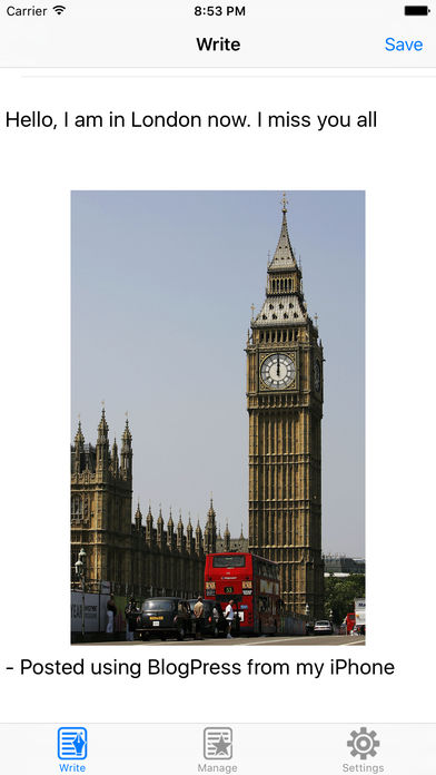 ON SALE NOW!!! $2.99 original $4.99!!! *** BlogPress support iPhone 5 Now! *** * In battle of mobile blogging tools, BlogPress wins on several fronts -- MacWorld.com * if one is looking for a powerful video blogging app, then BlogPress is definitely the app for you. -- BlogHerald.com * BlogPress – A mobile bloggin’ dream -- TapCritic.com * Video demo: http://goo.gl/lu5m BlogPress is an easy blogging app for both iPhone/iPod Touch and iPad and it is highly intergraded with your favorite social networks: Facebook, Twitter, YouTube, Flickr and Picasa!! We know blogging. You may want to share your idea, your daily life or the important moment with people who are important to you. BlogPress is an app for that. Text, photos and videos, Facebook and Twitter sharing, comments and reply, location sharing, labels/tags and categories ... BlogPress has everything you need for blogging. BlogPress is simple, easy to use, and come with rich features: - Universal app optimized both for iPhone/iPod touch and iPad, now it is also read for iPhone 5 - Text-image-mixed layout editor - Easy photo and video uploader, fully intergraded with Filckr, Picasa Web Album and YouTube - Tags/labels and categories supporting - GEO/Location tags auto detection, intergraded with Google Map - Scheduled Publish - Twitter and Facebook sharing - Simple HTML Quick Insert shortcut: Links, Bold/Italic/Font and Text color - Local and online drafts - Local Preview - Comments Management (Support Blogger and WordPress) - WordPress Pages Management - Password Protection - Landscape editing mode - Emoji icons supporting, funny icons in your post! - TextExpender supporting - Signature customization - General MetaWeblog API supporting BlogPress Support most of the mainstream blog platforms, including but not limited to: Blogger / BlogSpot, MSN Live Spaces, WordPress, Movable Type, TypePad , LiveJournal, Drupal, Joomla, Tumblr, Squarespace, My Opera ... You would love blogging again on iOS with BlogPress!! Just enjoy blogging and enjoy the sharing.
