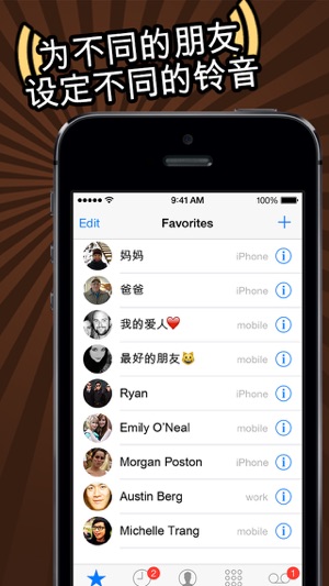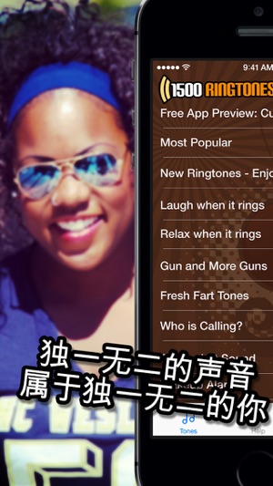 免费获得1500款铃音 无限下载 音乐,音响效果,等等 听到是谁在给你打电话 为不同的朋友设定不同的铃音 豪华铃声集锦 • 禅宗音乐 – 响起时会感到很放松 • 滑稽类 – 响起时,伴随着蛮横的姑奶奶级暴徒、拉丁爱侣、神话般的王后、淘气的公主以及更多其他类似声音,令人忍俊不禁。 • 粗俗铃声 – 放屁、打嗝以及更多令人恶心的声音 – 好玩! • 嘻哈打击乐 – 来自加利福尼亚西海岸充满生气的嘻哈打击乐。 • 报出来电人号码/姓名铃声 – 谁来了电话? • 声效铃声 – 狗、猫、公鸡、直升飞机、收银机、开香槟酒瓶以及许多其他铃声。 我们有您想要的铃声 我们从今年最热销的铃声、最热门的电影、…