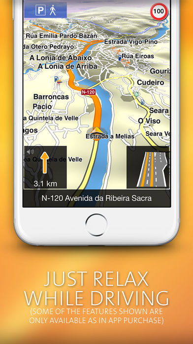 Whether on holiday, taking a weekend trip or heading off somewhere as yet unfamiliar – with NAVIGON, you can be sure of getting there quickly and safely! Transform your iPhone into a full-performance satnav system that includes onboard maps so that you can always find your way – even when no internet connection (1) is available. *** Range of functions *** - Onboard map material: only carry the road maps on your iPhone that you really need. Thus you save memory space and can navigate even when no internet connection is available. - Intelligent address entry (1): thanks to the first-class, simplified address entry, which can be operated using the keypad or via voice input, you’ll find your quicker than ever before. - Precise voice commands, including street names: just concentrate on driving the car. - The latest traffic reports (1,2): avoid annoying traffic jams automatically. - Hazard warnings (1,2): you can choose to receive alerts of danger spots such as mobile speed traps. - POI search: find your destination even without entering the address directly – locally, community-based or using Augmented Reality. - Real signage and road sign displays: you always have an overview thanks to photo-realistic views of junctions and road signs. - Dynamic lane assistant: at junctions where the exit is unclear or on motorway exits, be guided into the right lane every time. - Speed assistant: NAVIGON warns you visually or audibly if you are exceeding the posted speed limit. - Optimal route: choose the right option for you, from up to three suggested routes. - Route planning: plan longer trips with multiple destinations en route. - Expanded pedestrian navigation: navigate to your destination on foot as well – or use Urban Guidance (1,2) if you also want to include public transport. - Many other in-app purchases possible: 3D maps showing mountains and valleys, Cockpit and much more. *** Maps *** - Latest Map Guarantee for the latest HERE maps (3), with the following coverage: AL, AN, AT, BA, BE, BG, BY, CH, CZ, DE, DK, EE, EL, ES, FI, FR, GI, HR, HU, IE, IT, LI, LT, LU, LV, ME, MT, NL, NO, PO, PT, RO, SE, SI, RS, SK, UK, VA - NAVIGON FreshMaps XL (2): For a one-off payment, you get the latest map updates from experts up to four times a year, for two years! This ensures that your app is always up-to-date, containing the latest changes of the road network and many new points of interest. *** Please note the following *** The correct positioning of your iPhone in the vehicle is very important for optimum GPS reception. Continuous use of GPS can shorten battery life. Please also note our FAQ section at www.navigon.com. Due to the high data volume of the maps, we recommend using WiFi for the initial installation. NAVIGON wishes you a lot of fun from your navigation – whether in the car, on a bike or on foot! 1) To be able to provide you with the latest reports at all times, some functions require an internet connection (e.g. traffic reports or speed camera alerts). However, the navigation system itself, including address search, speed display, driving lane assistant and much more, does not require the internet. 2) Available as an additional in-app purchase. 3) You get the most up-to-date maps at the time you purchase the app